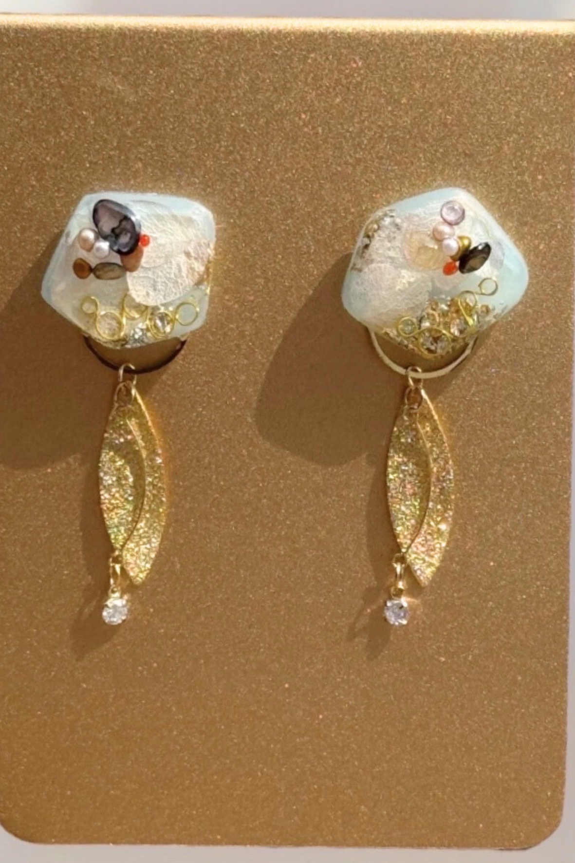 YOKO先生が手がけるレジンアクセサリー作品は、カラーの組み合わせや配置バランスもセンスが光りおしゃれで上品な作品に仕上がっています✨